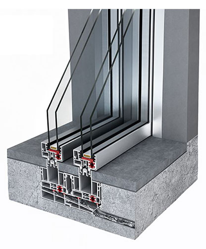 - Συντελεστής θερμοπερατότητας Uf: 2.2 - 2.8 W/(m2K) (EN 10077-2:2003-10)